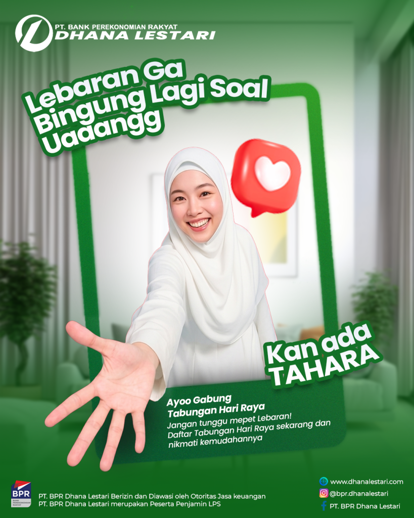 Bergabunglah bersama TAHARA dari PT. BPR Dhana Lestari dan wujudkan Lebaran yang lebih tenang, nyaman, dan penuh kebahagiaan.